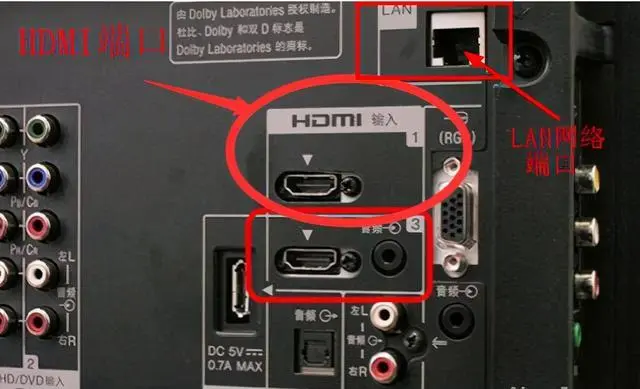 首先确定老电视的连接端口,早些年的“大屁股”老式电视就不要考虑连接网络电视了,可能电视本身的价值还没有网络机顶盒之前,而现在的大多数电视都是液晶电视,而且是使用了数字传输信号的技术,这类电视都会配置很多端口,比如HDMI端口,无线网络端口等。如下图: