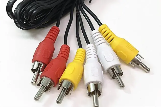 写到这里,我想很多人估计已经知道该怎么做了,既然购买到了支持HDML传输的机顶盒,本身电视也具备HDML的接口,那么下一步要做的就是音频方面的传输。而大多数网络机顶盒都会配备一根连接老电视的三项音频线,通过对比我们也可以发现,老电视的背面,以及网络机顶盒的背面接口都提供了三根不同颜色的音频接口。所以,我们要额外准备一根音频线。如下图:
